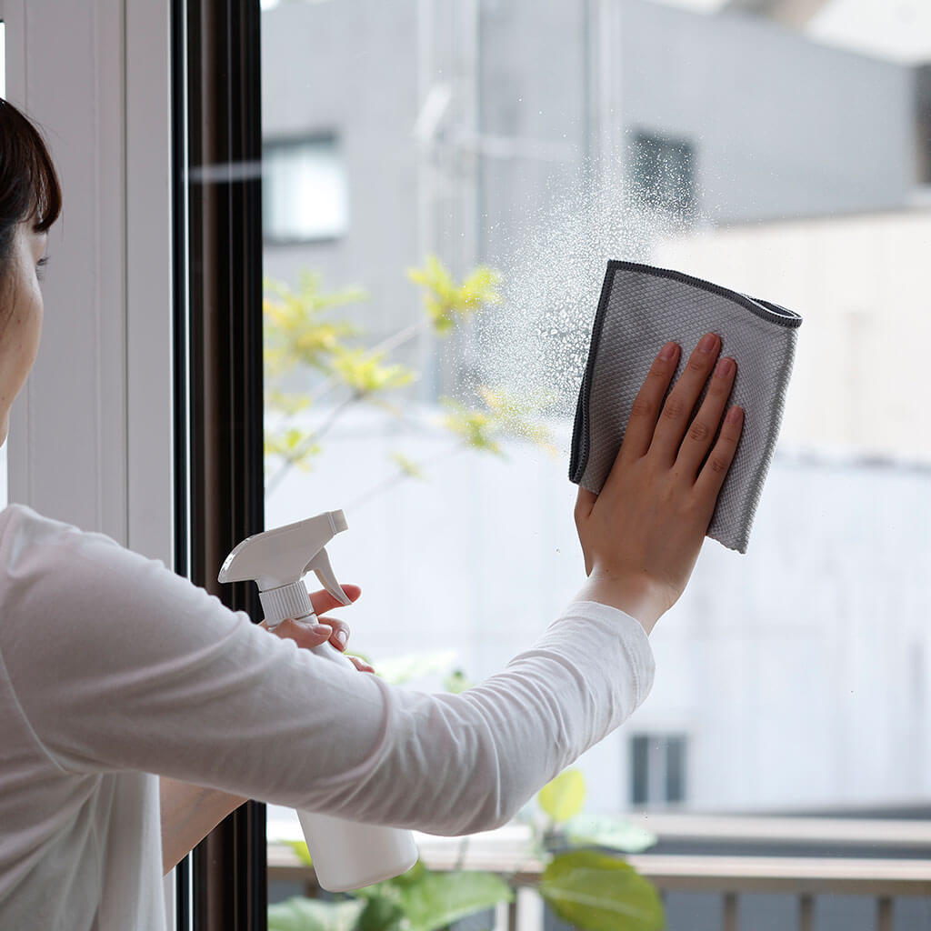 • 水で濡らし固く絞ってご使用いただくか、クロスは濡らさずに、スプレーで水をガラス・鏡に吹きかけてご使用ください。