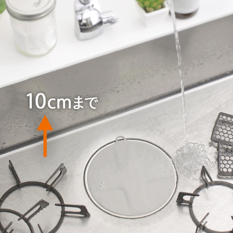 排水口に載せるだけで簡単に水を溜められます。(水位は10cmまで)