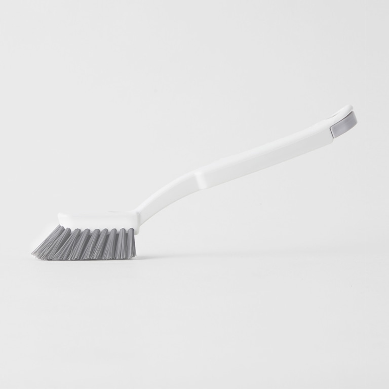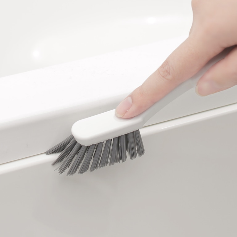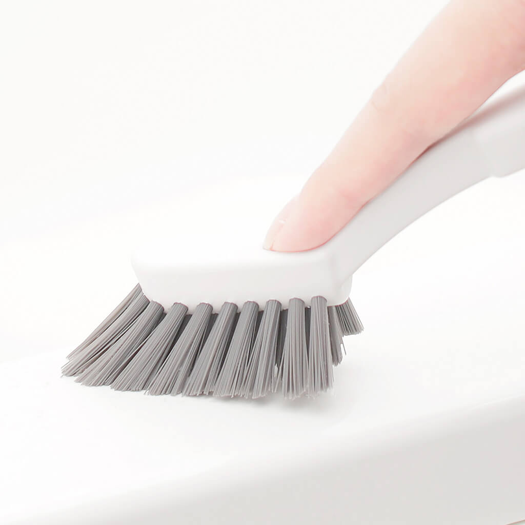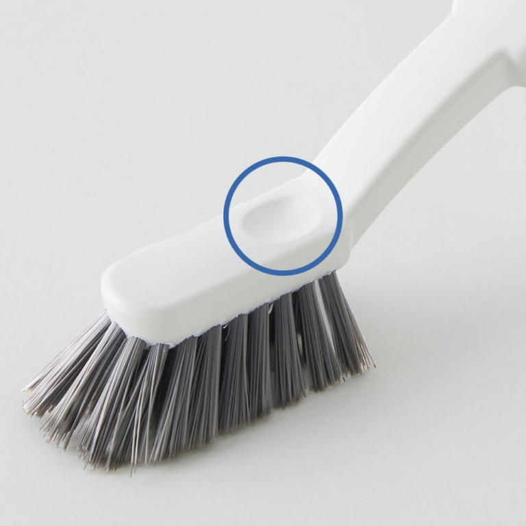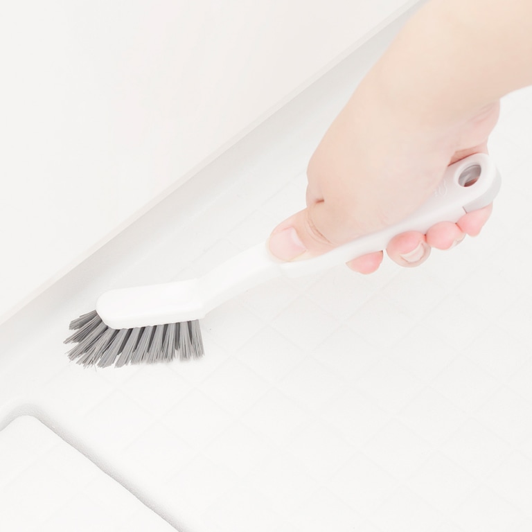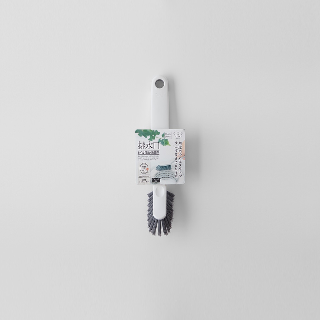 角度のついたコシの強いブラシで汚れをしっかり落とします。毛の色はグレーで汚れが目立ちにくく、生活空間にもなじみます。