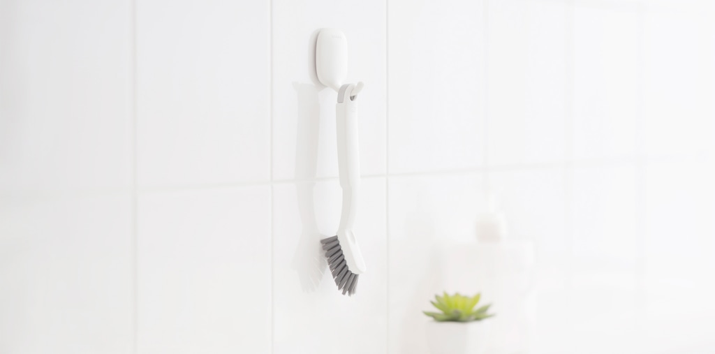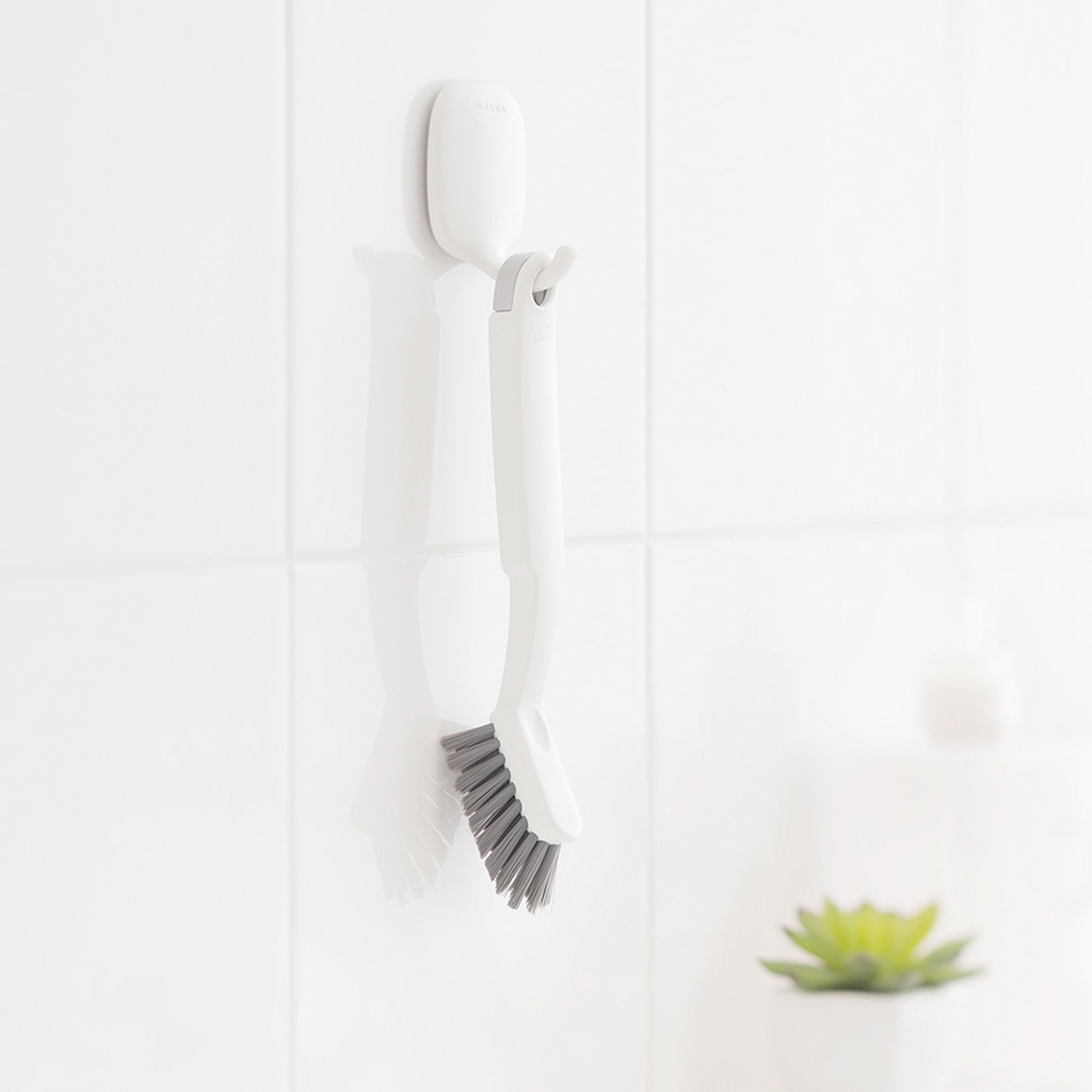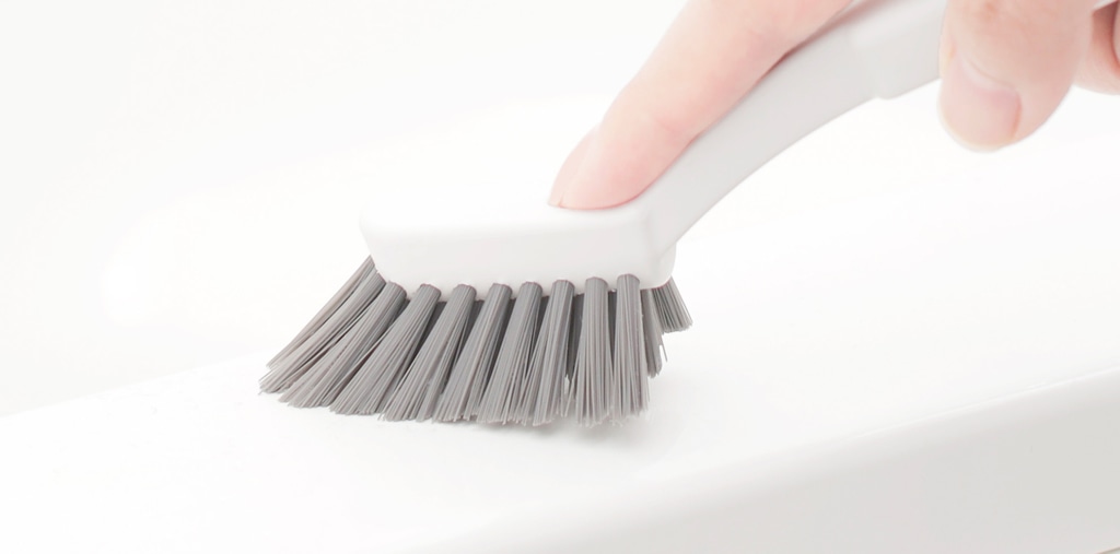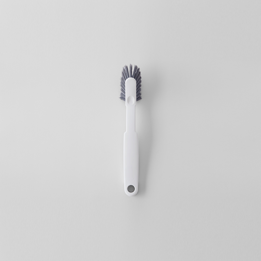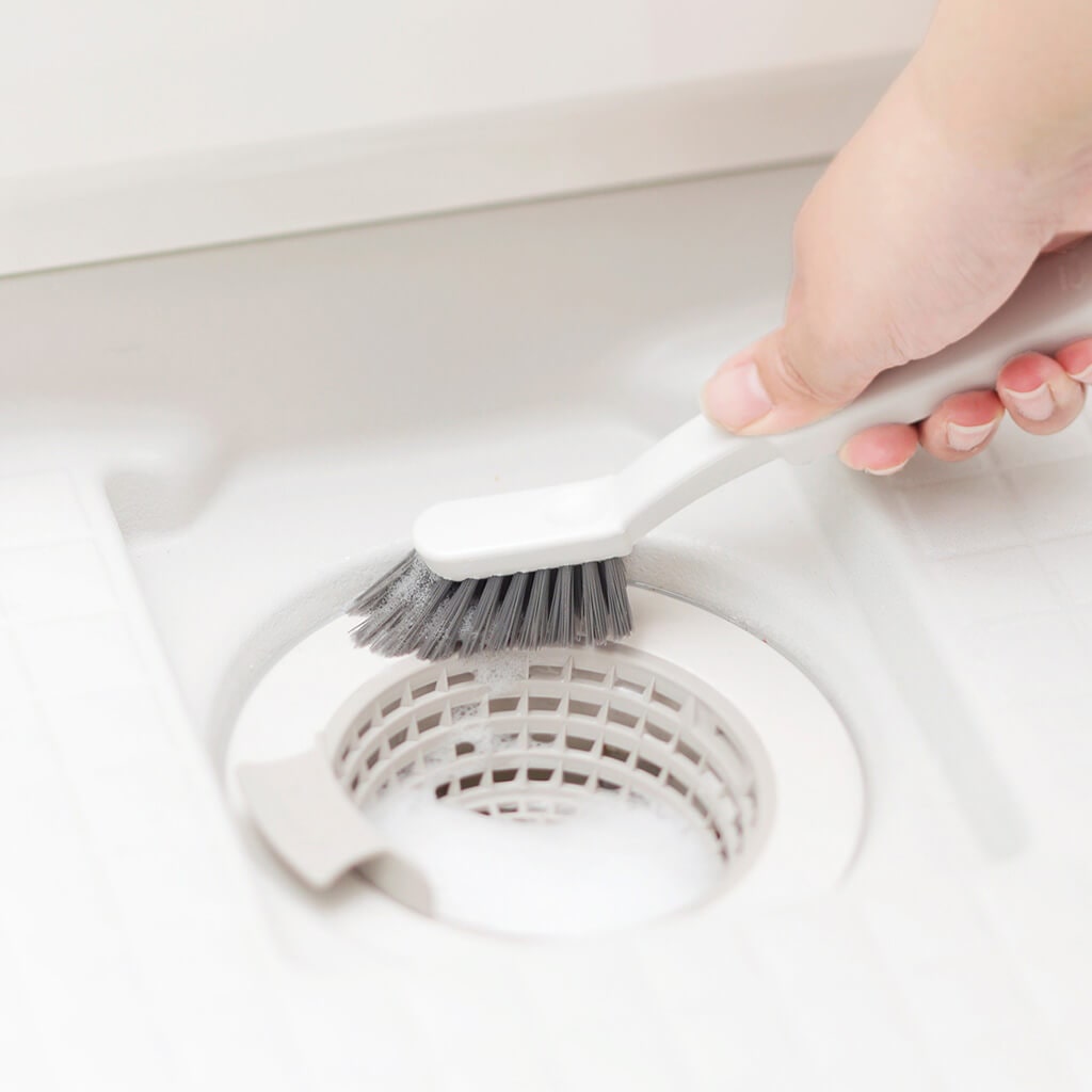 角度のついたコシの強いブラシで汚れをしっかり落とします。毛の色はグレーで汚れが目立ちにくく、生活空間にもなじみます。