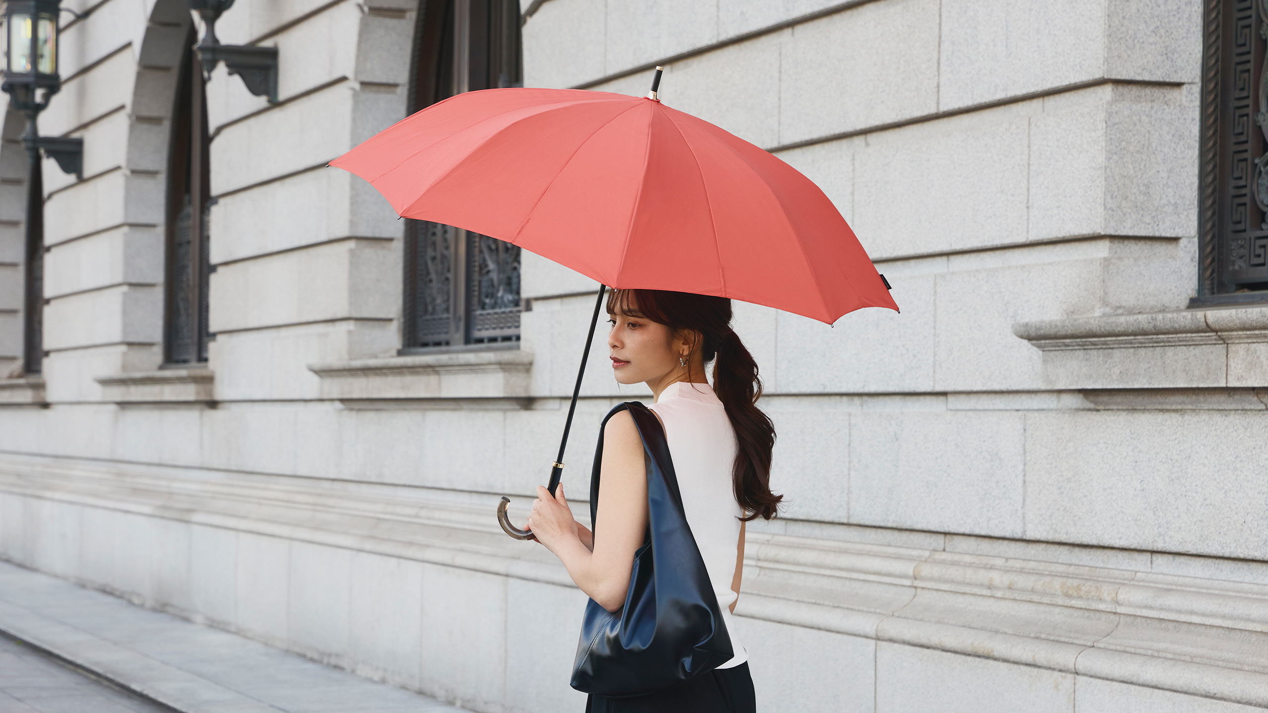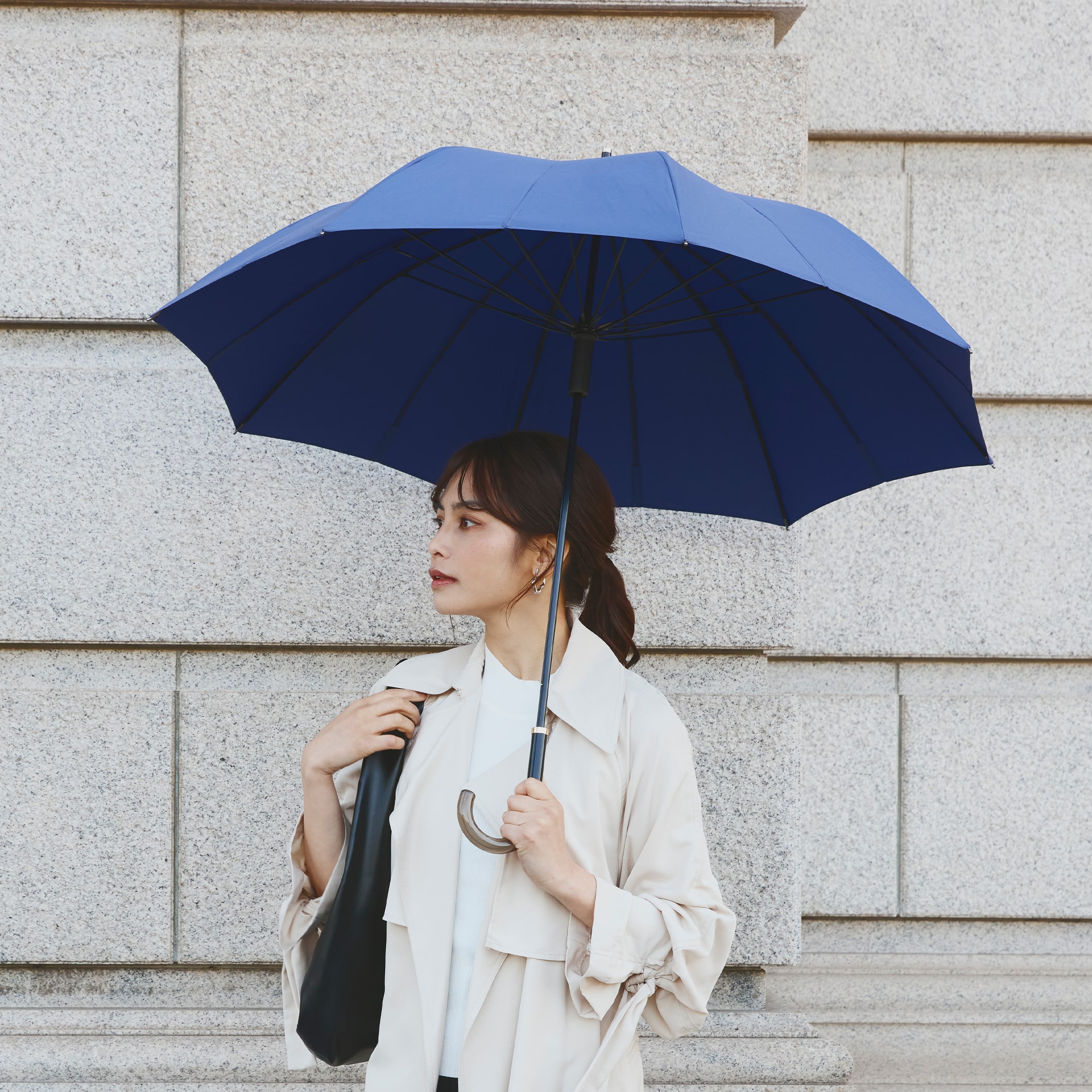 定番の「Shupattoアンブレラ」の撥水力を高めた、雨粒がきれいに転がるWEB限定モデルです。閉じる動きに連動して、生地がくるくると巻き込まれる新機構。生地をまとめたりベルトで留める必要がなく、手を濡らさずにたたむことができます。シックなカラーと持ち手で、カジュアルからフォーマルなファッションまで、幅広いスタイルにマッチします。