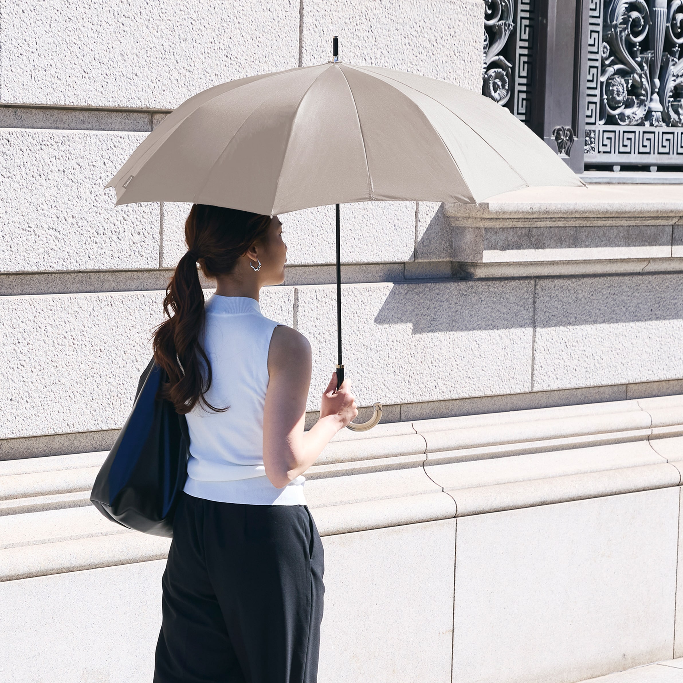 閉じるだけで一気にたためる機能はそのまま、UVカット効果、遮光効果、さらには遮熱効果のある「 Shupatto アンブレラ UV」も。