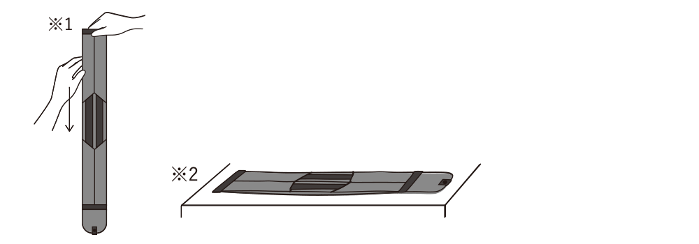 • プリーツが収まりにくい場合、※1のように両端を引っ張った状態で形を整えてから、たたんでください。