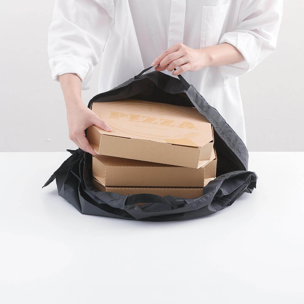 底マチフリー構造のため、底面が広いピザの箱なども入れられます。