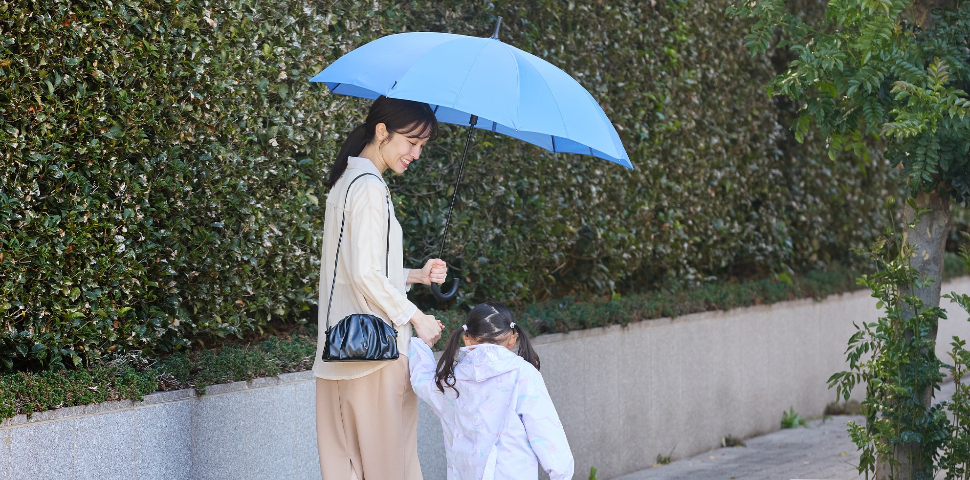 雨の日のお子様とのおでかけも、さっと傘を開閉できてスムーズに。