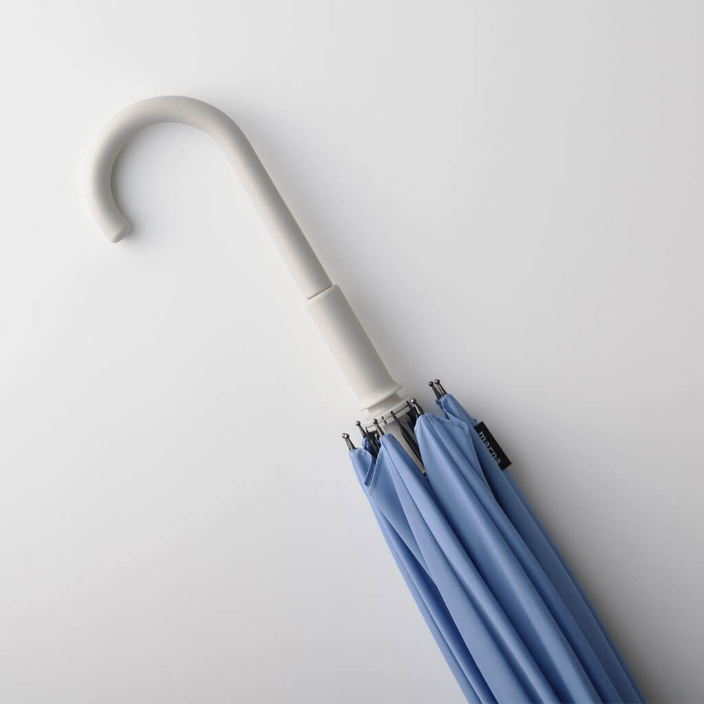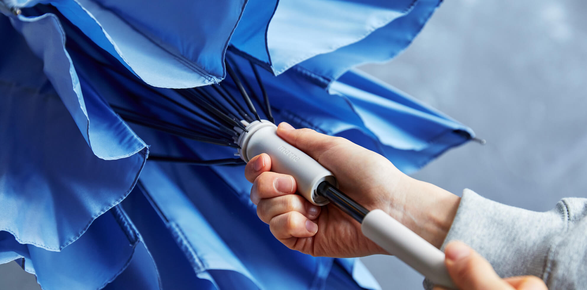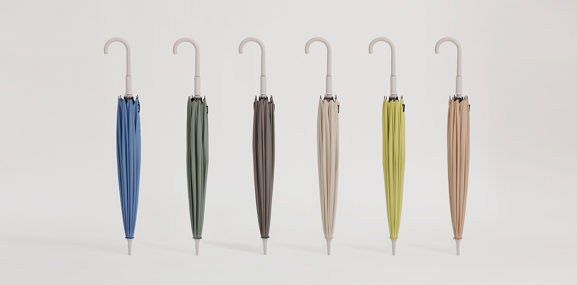 ベルトで留める必要がない、閉じるだけで一気にたためる傘です。62cmサイズに、6つのニュアンスカラーが仲間入りしました。閉じる動きに連動して、生地がくるくると巻き込まれる新機構。雨粒の付いた生地に触れずにたためるので、最後まで手が濡れません。