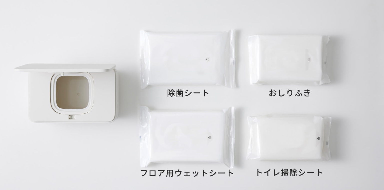 ウェットシートが袋のまま入ります。除菌シート・おしりふき・フロア用ウェットシート・トイレ掃除シート・マスク等にも対応しています。※袋に入った状態で110mm×160mm×50mm以内のシートが入ります。