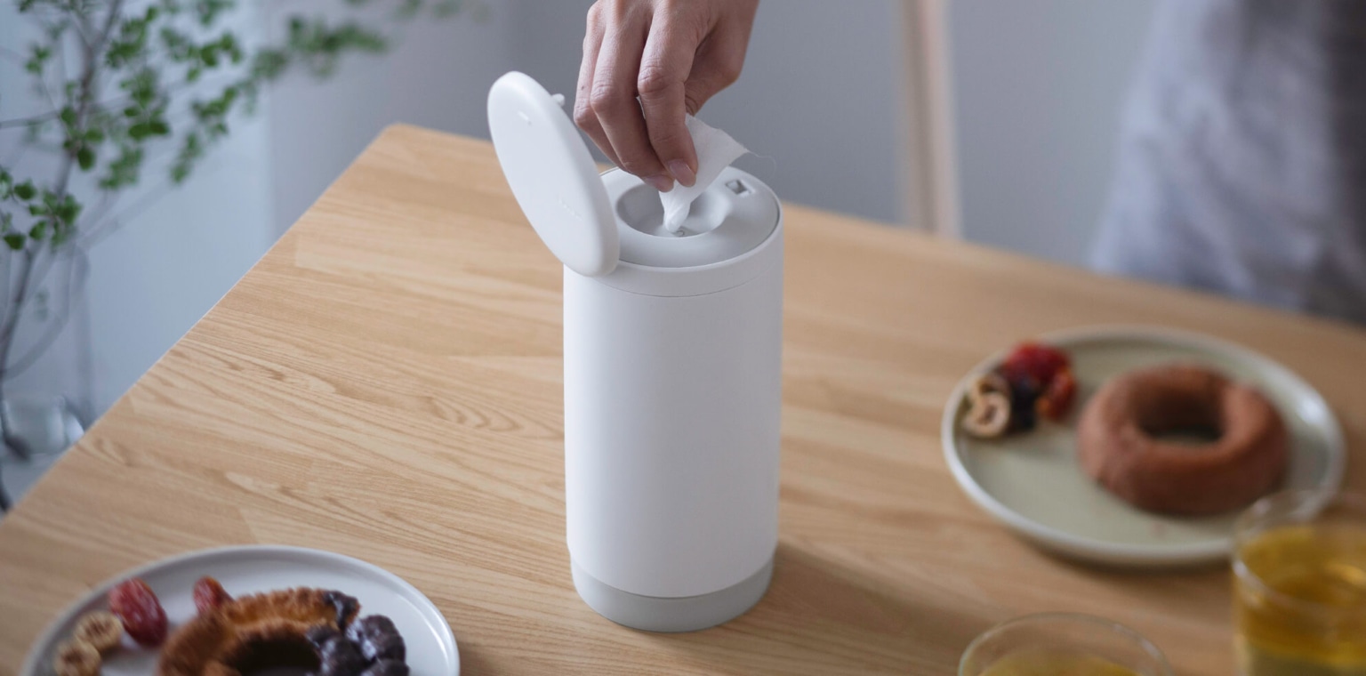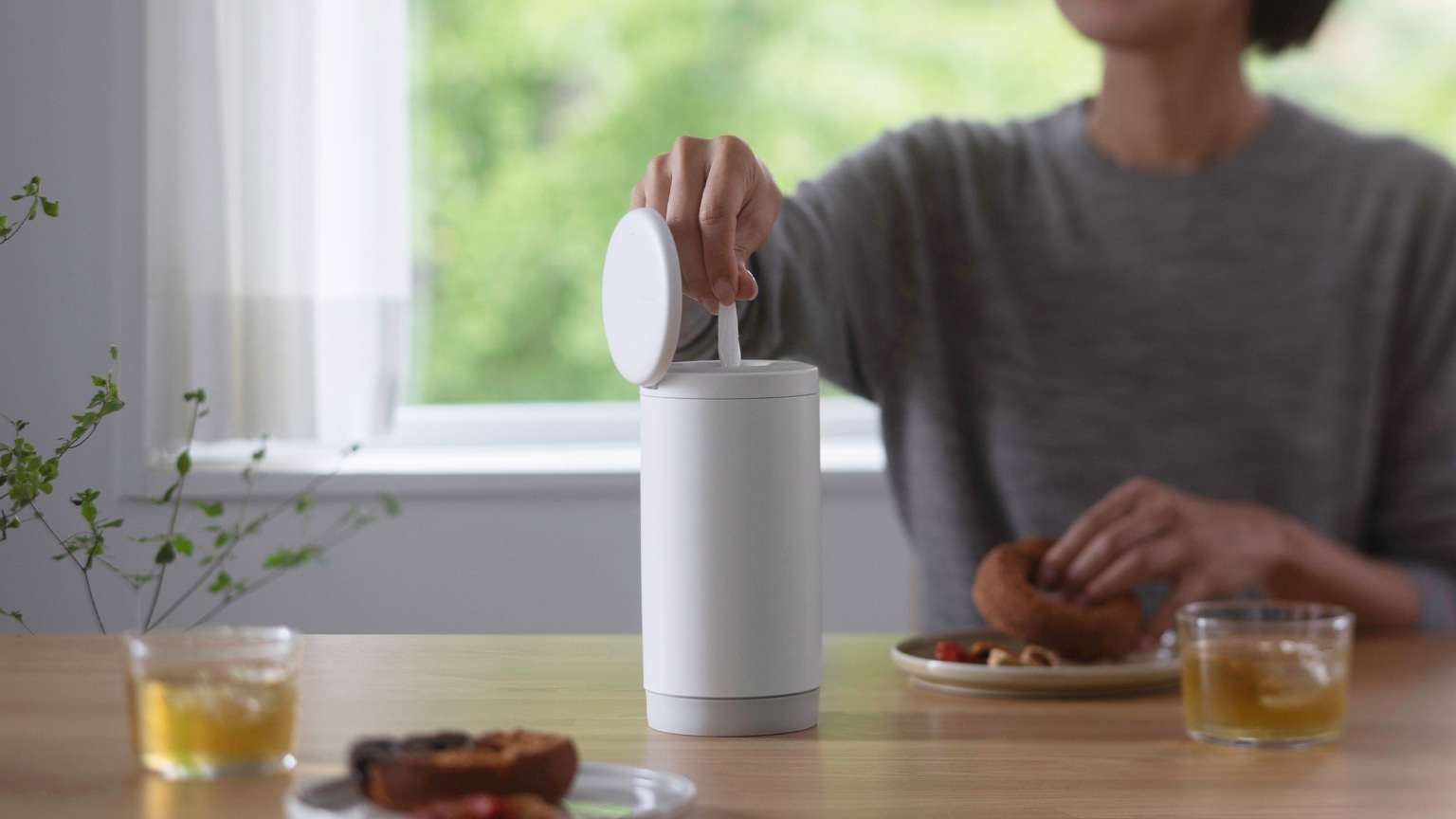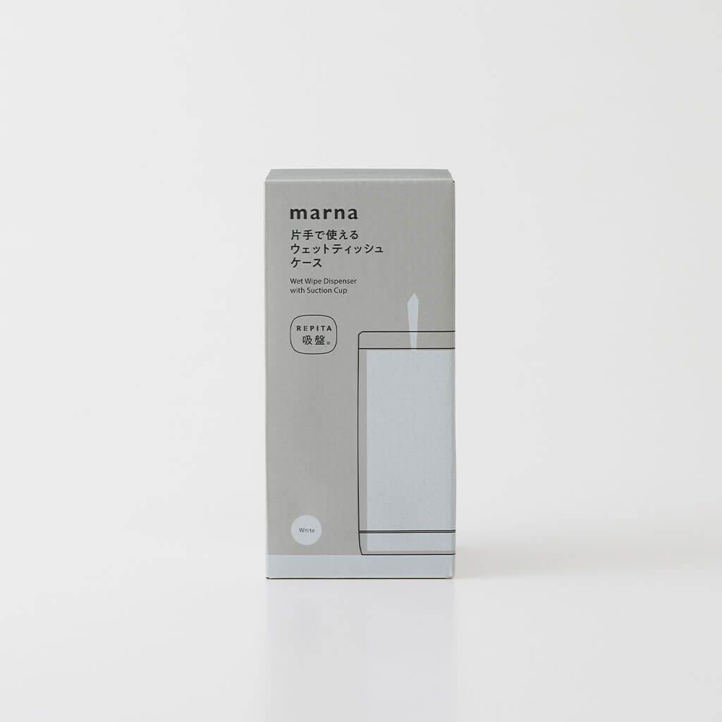 マーナ開発、着脱が簡単にできるフレキシブルな吸盤「REPITA(リピタ)」が装着されたウェットティッシュケース。軽く押し付けるだけで固定されて、吸盤部分に触れるだけで簡単に外せます。