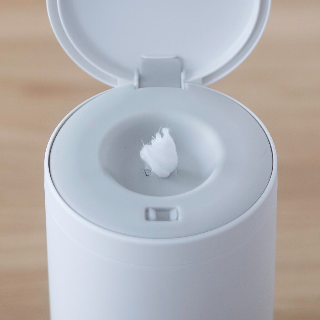 取り出し口がシリコーンで覆われたフタとパッキンで密閉。ティッシュの先端まで潤いを逃しません。