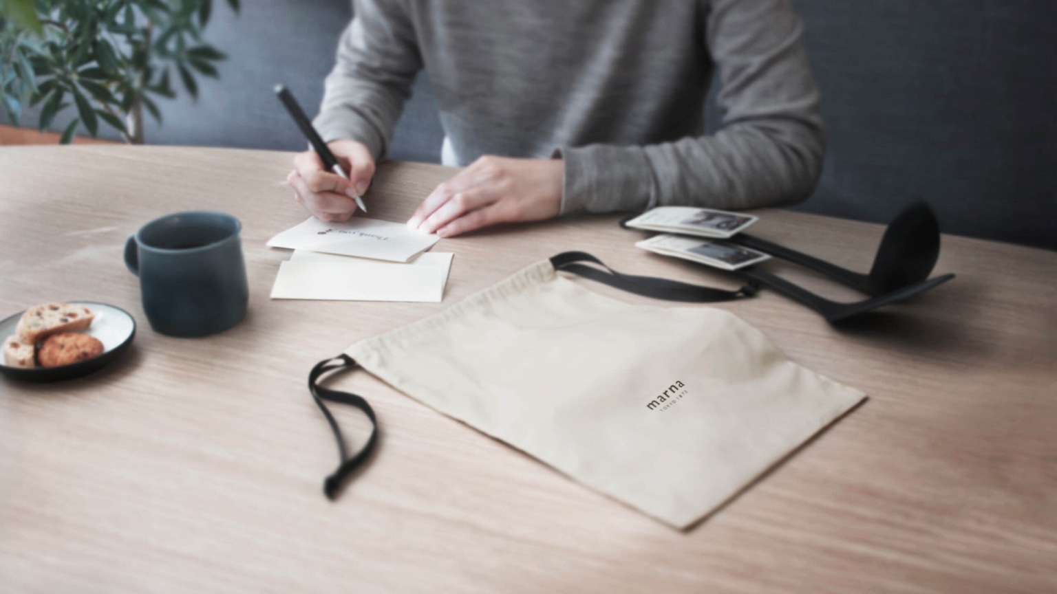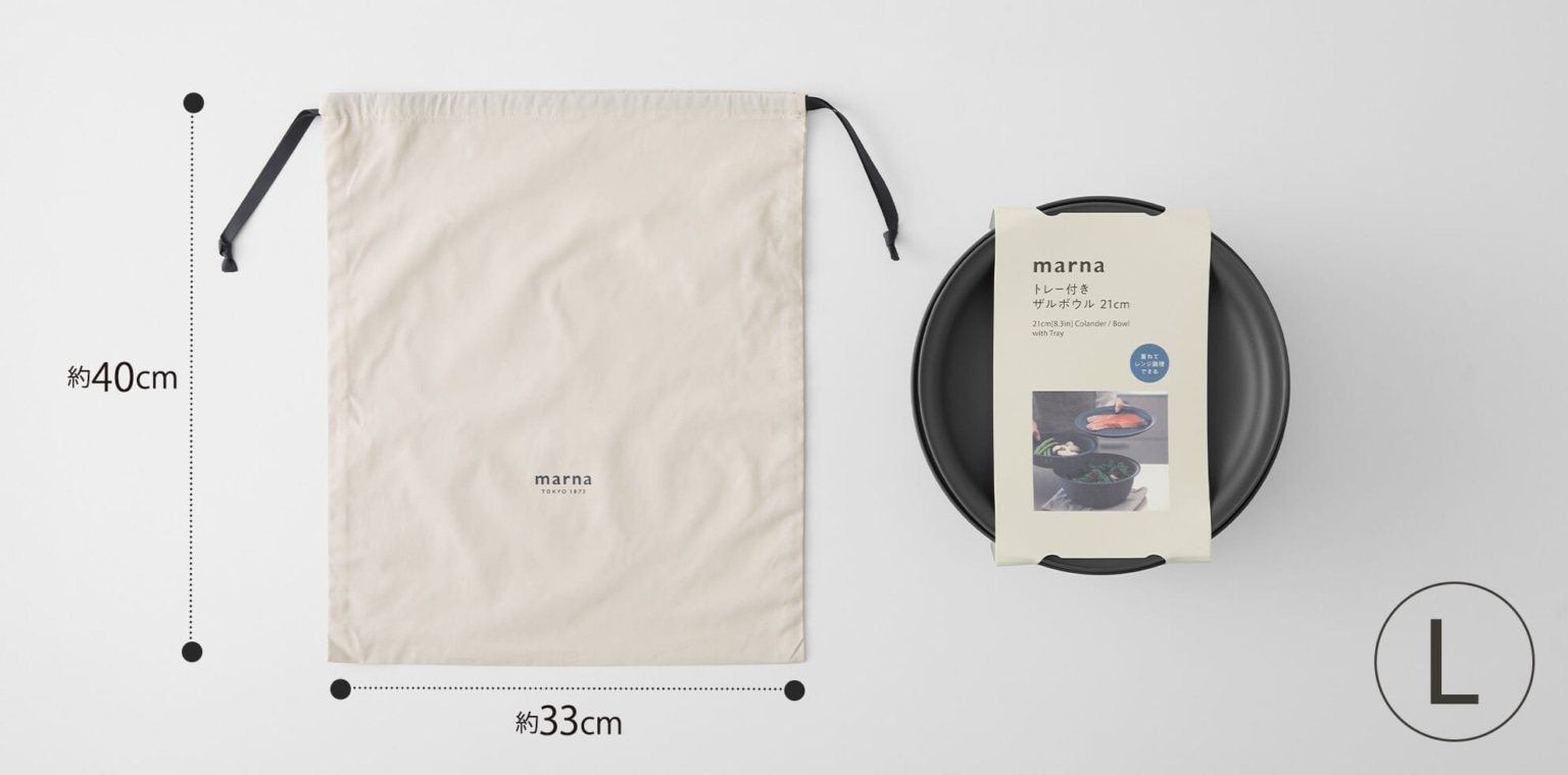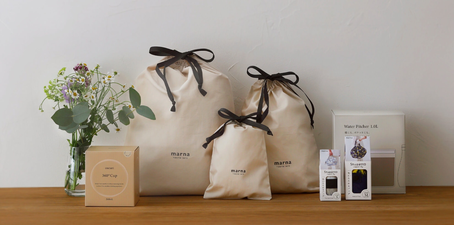 マーナ公式サイト限定のオリジナルコットンバッグです。ご自身で商品を組み合わせたり、メッセージカードを入れたり、お好みに合わせてラッピングしたい方におすすめです。巾着タイプなので、リボンをキュッとしめて簡単にお包みいただけます。