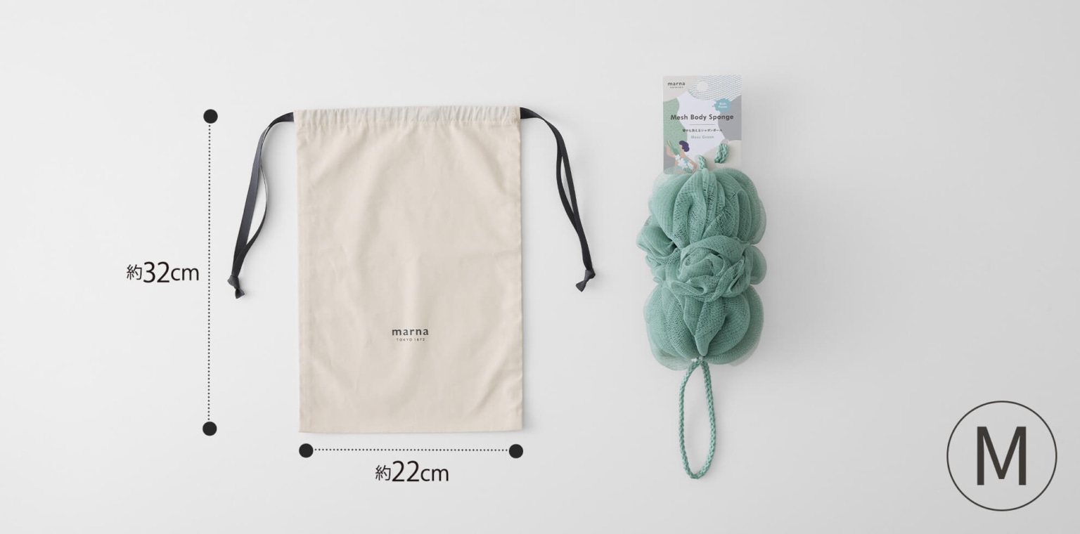 Mサイズは、背中も洗えるシャボンボール アッシュがちょうどよく入ります。