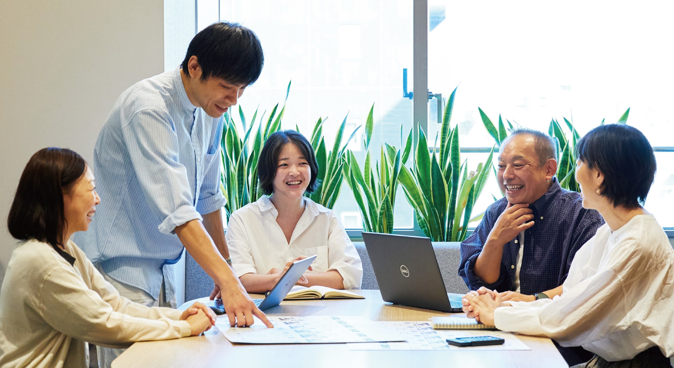職種の違いも、部署の垣根も越えて一丸となり、理念である「Design for Smile 暮らしを、いいほうへ。」の実現に向かって、日々邁進しています。