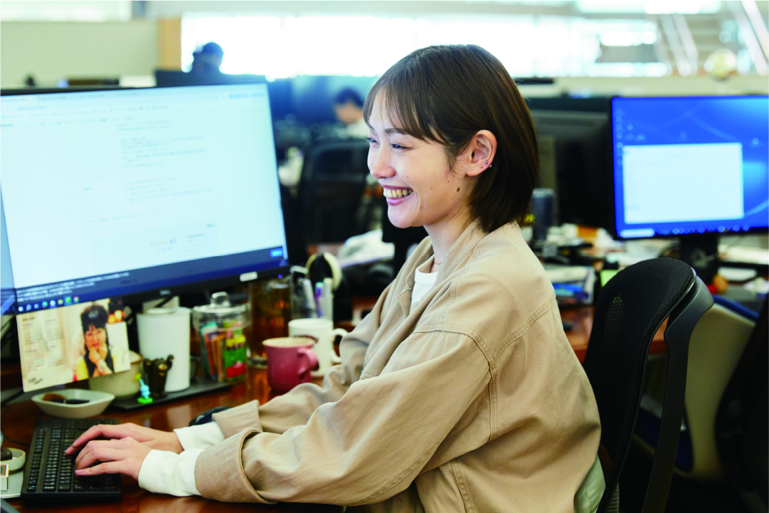 コミュニケーションを大切にする人が多く、社員同士の仲がいい職場です。ランチミーティングや社内制度を通じて、普段一緒に仕事をしていないメンバーや別のフロアにいるメンバーとも頻繁に交流できます。意外な一面を知れたり、プライベートでの繋がりができることも。人見知りな私でも気がついたら関わりが深まっていて、それが日々の楽しみや支えになり、仕事にも前向きに取り組めています。